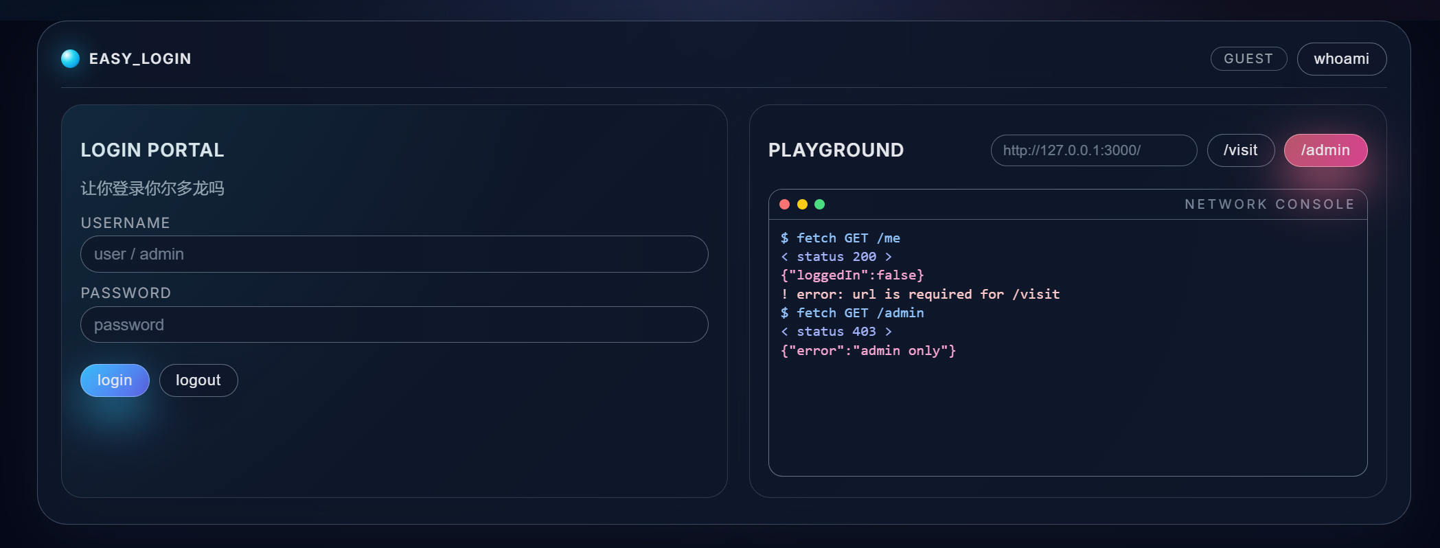 再往先可以看到,我们一旦完成了管理员登录,即可通过/admin端点获得flag。