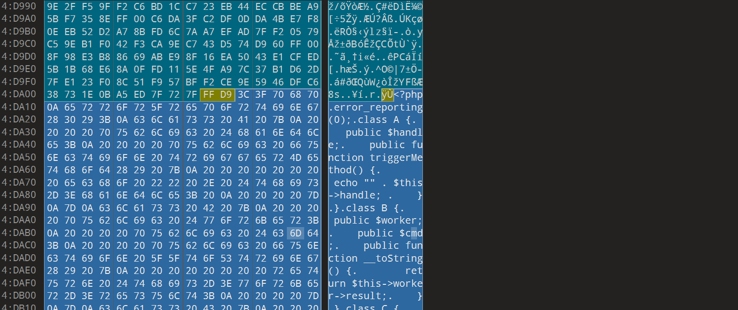 首先010打开图片,发现尾部有额外信息,是PHP文件: