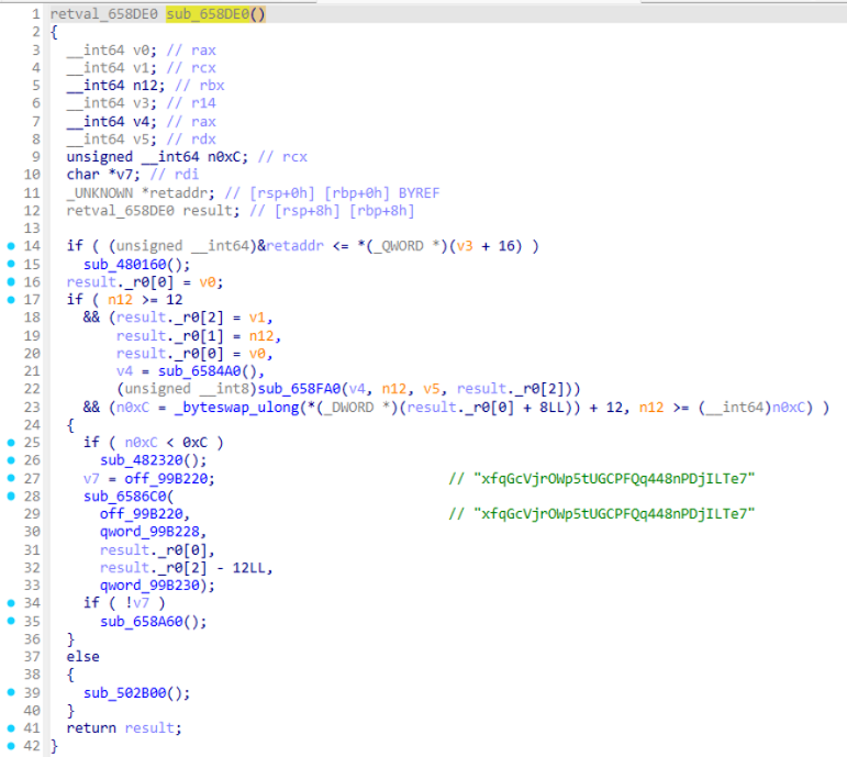 逆向这个Go主程序,一路定向到解密这里,发现是一个AES-256-GCM算法的解密