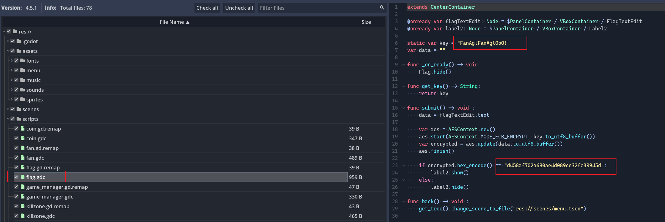 直接使用GDRETools反编译该游戏,发现flag的相关代码: