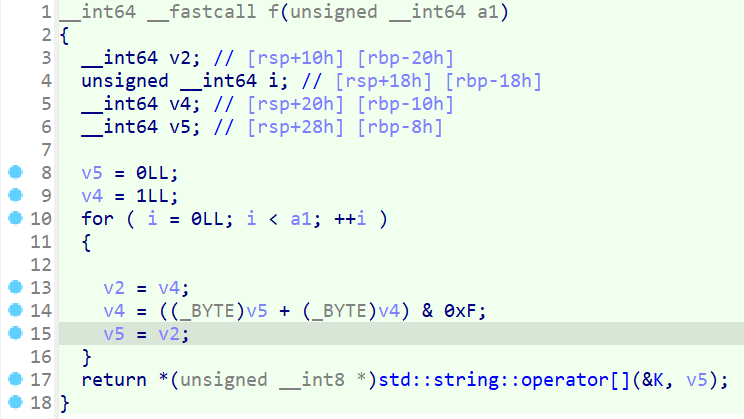 应该是斐波那契数列的相关操作,可以优化。从汇编里扣出来参数,转换成Python代码如下: