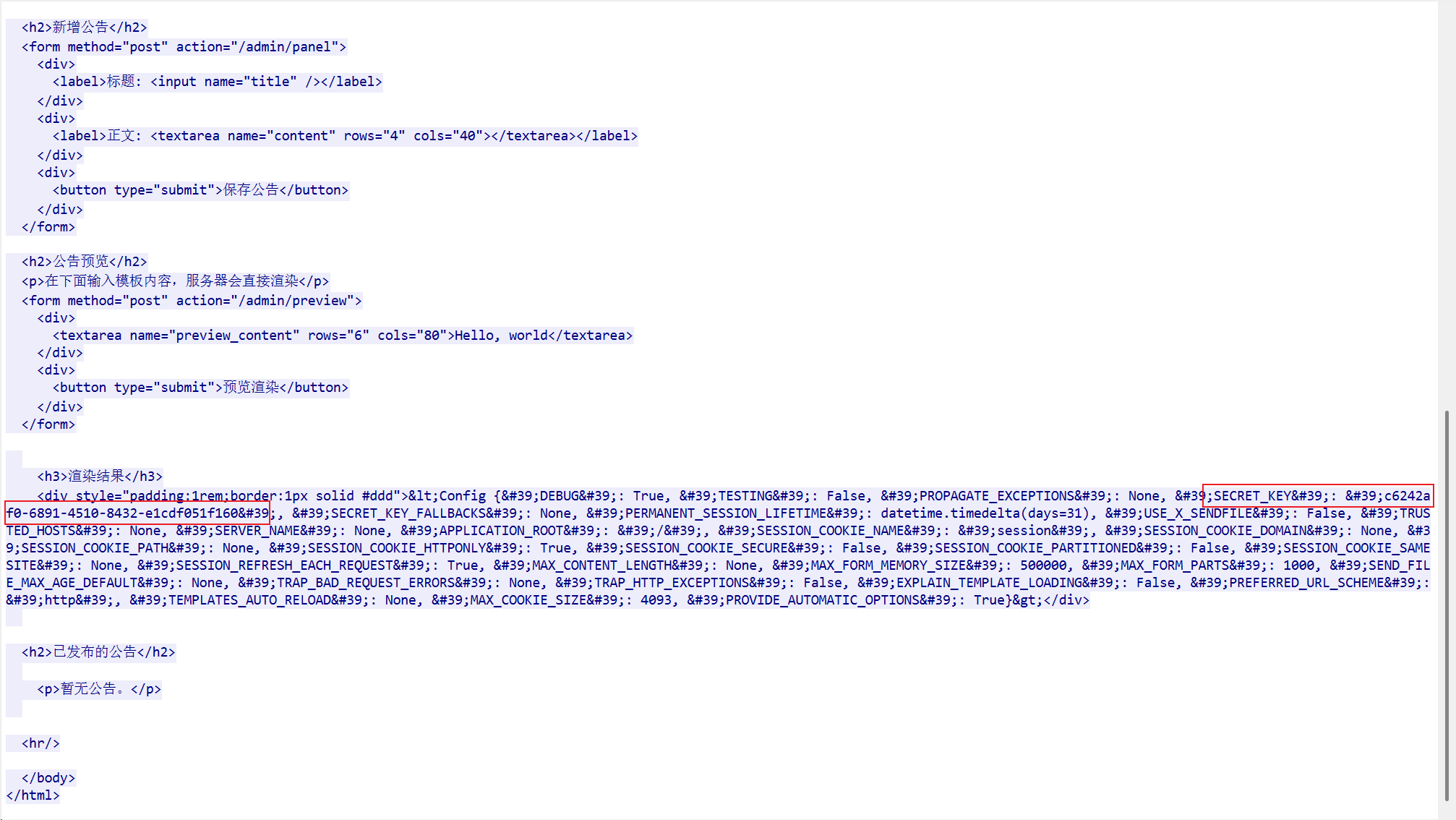 接着,我们需要寻找Flask应用的SECRET_KEY,发现后面进行了SSTI注入,并成功了: