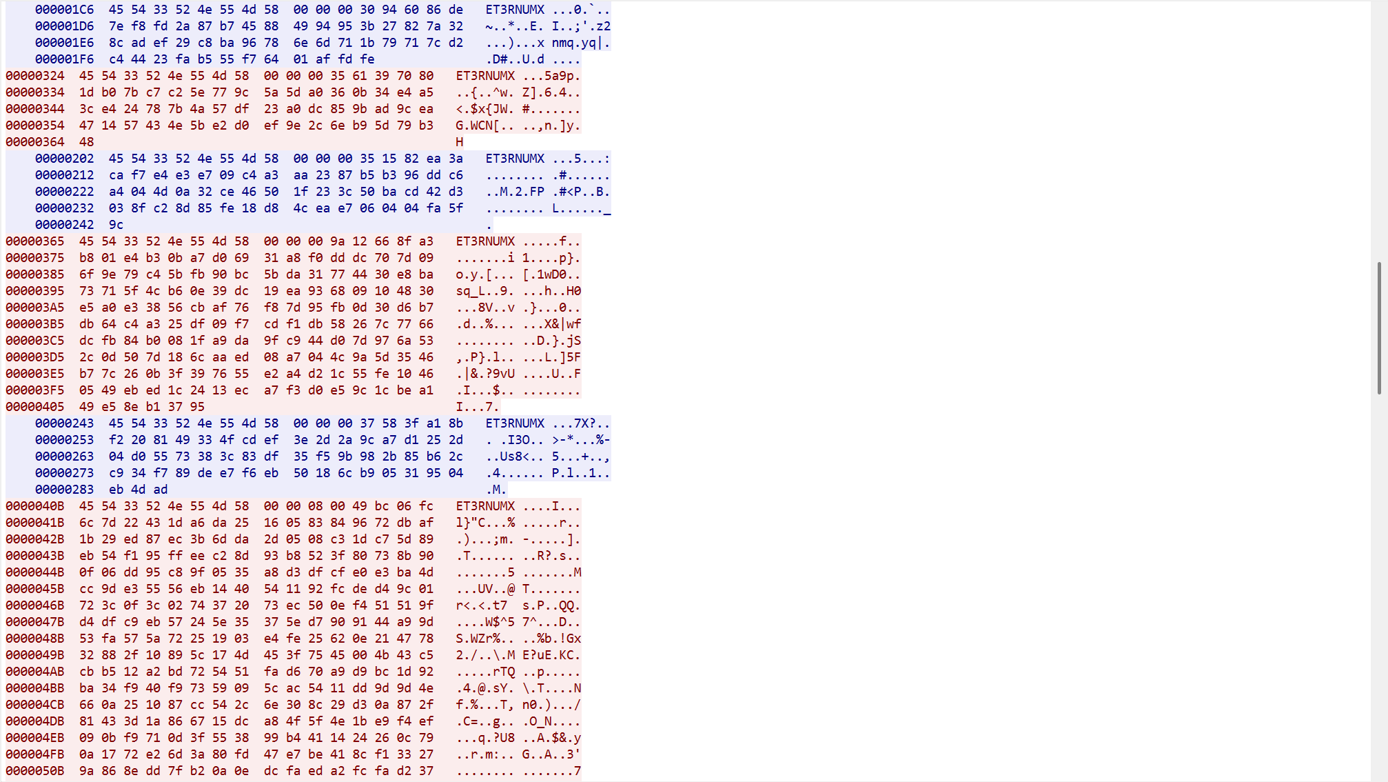 000002A0 45 54 33 52 4e 55 4d 58 00 00 00 78 fc 3d 80 84 ET3RNUMX ...x.=..