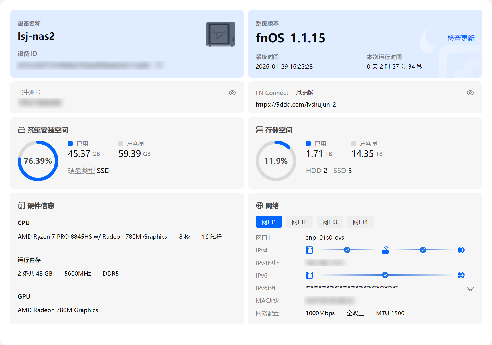 这台服务器运行基于Debian的飞牛系统,作为国产操作系统新锐,飞牛当前的使用体验还是不错的。而且基于Debian,就可以当成服务器系统进行常规的管理和运维。配合1Panel等成熟的Linux管理面板,部署、开发和储存体验都相当不错。在系统上部署了Openresty,可以方便地映射出内网端口供外网使用。