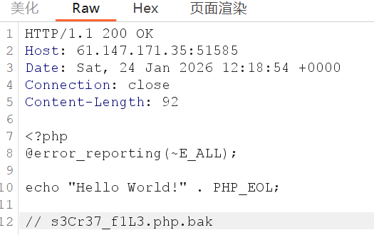 首先利用PHP Development Server <= 7.4.21 - Remote Source Disclosure漏洞获得页面源码,需要构造如下请求: